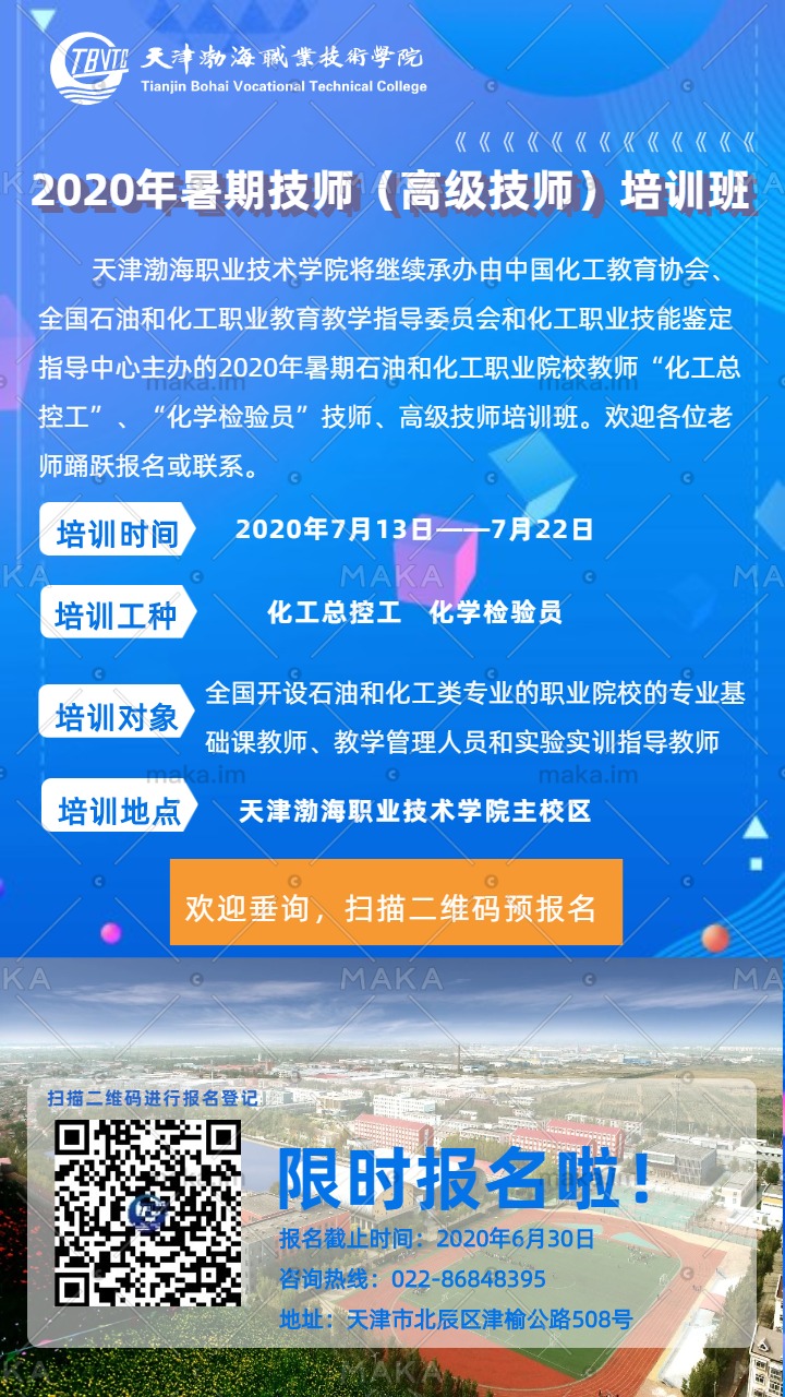 关于举办2020年石油和化工职业院校教师“化工总控工”、“化学检验员”技师、高级技师培训班的通知